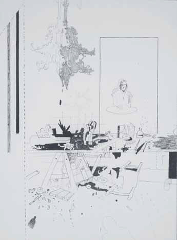 GIANFRANCO FERRONI Livorno 1927 – Bergamo 2001 LA STANZA LIBERTY, 1967 litografi a su zinco, in nero, cm 55x45. Firmata e datata in basso a destra: Ferroni 67 Esemplare 20 su 55. Bibliografi a: Gianfranco Ferroni litografi a catalogo ragionato, Galleria Ceribelli, Ed. Lubrina, Bergamo 2006, pag 39, n.11 (riprodotto).