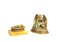 Lotto composto da due gruppi in bronzo dorato raffiguranti un bimbo entro una...
