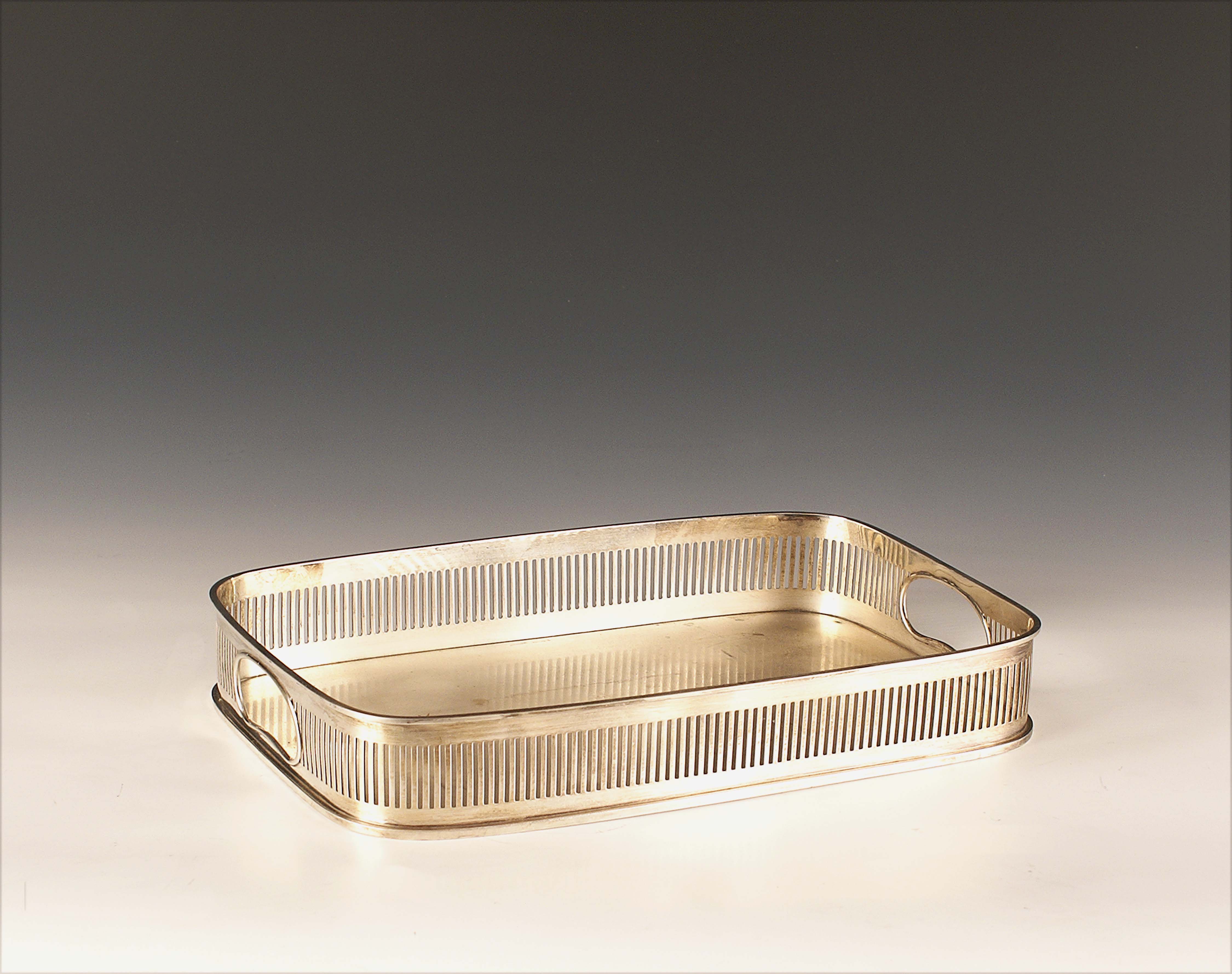 Vassoio rettangolare in argento con ringhierina, gr. 1110.
