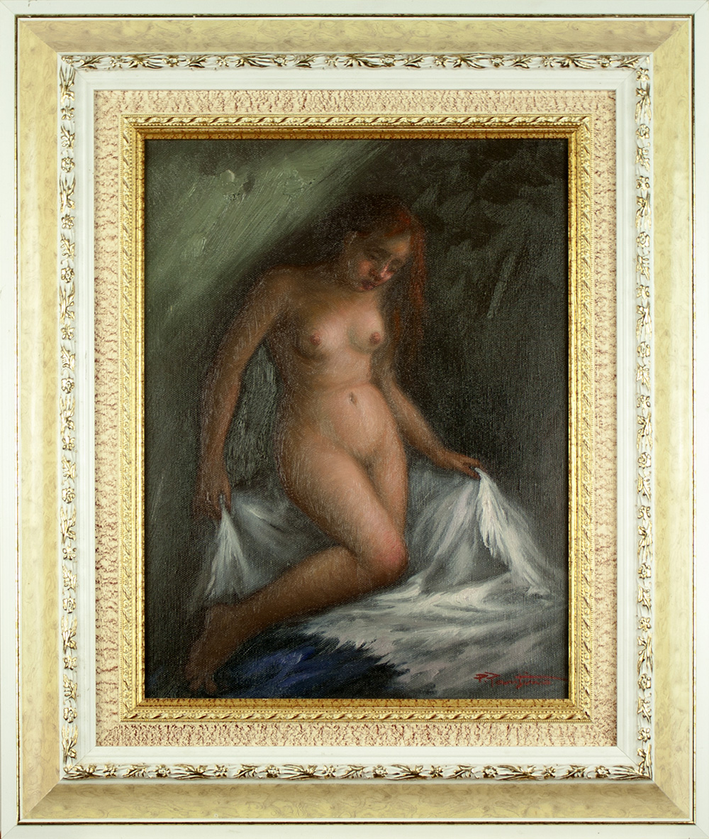 lotto unico di n. 2 opere: 144 a AUTORE SCONOSCIUTO olio su tela cm 40 x 30 144 b GIULIANO TROMBINI Ferrara 1953 serigrafia su carta cm 35 x 100