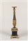 Torciere elettrificato in legno laccato e dorato a mecca poggiante su base a plinto, XIX secolo, h. cm. 168.