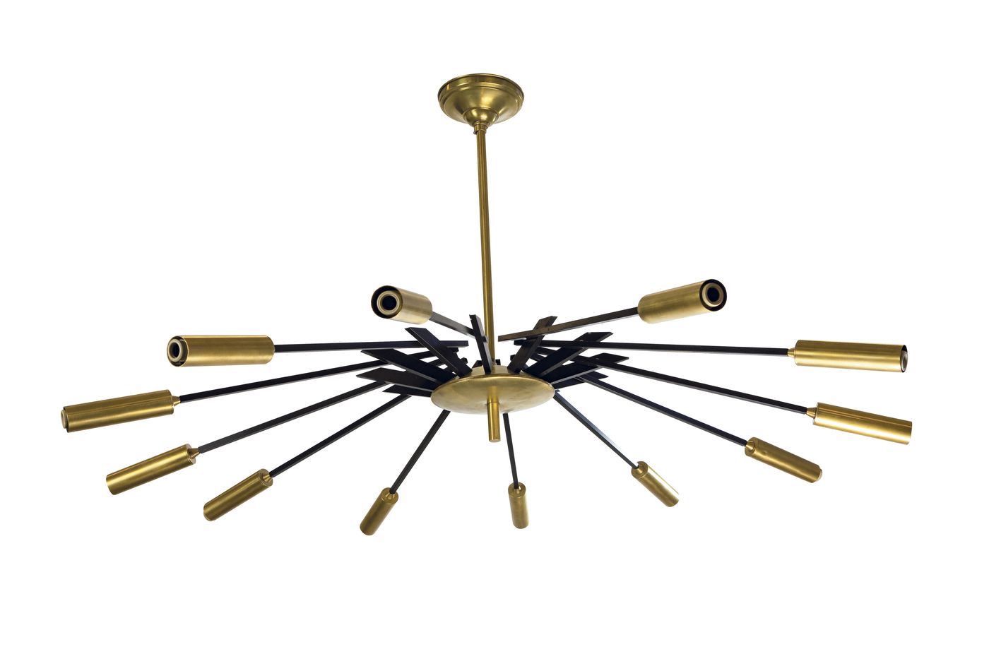 Lotto 689 | LAMPADARIO - Lampadario a dodici braccia in ottone e metallo laccato nero....