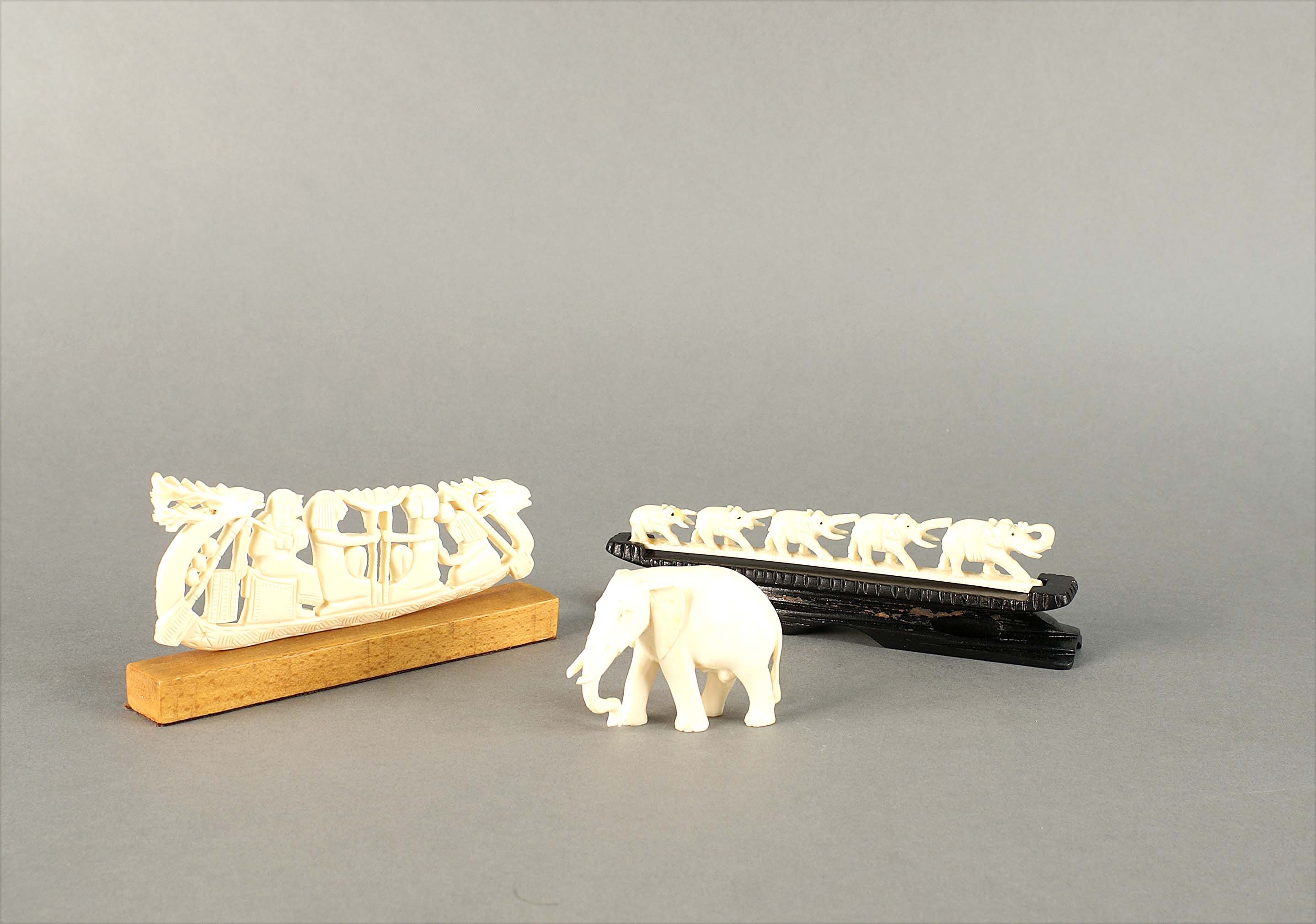 Lotto composto da tre oggetti in avorio, manifattura orientale, fogge e misure diverse (lievi difetti).