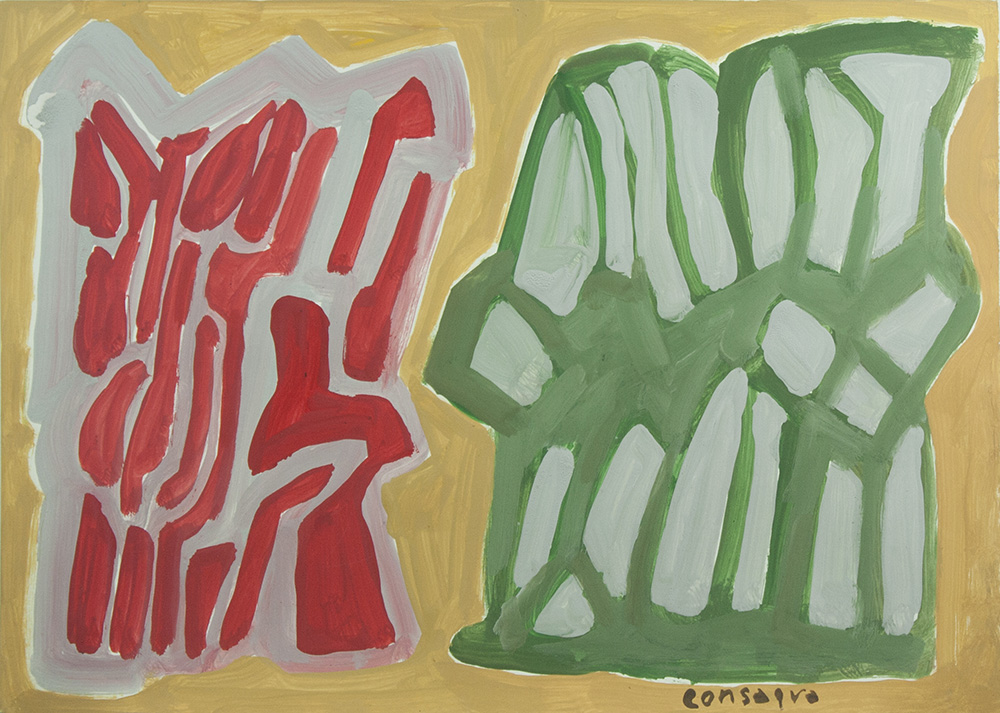 PIETRO CONSAGRA Mazara del Vallo 1920 – Milano 2005 " Fondo ocra ( due immagini ) anno 1975 olio su cartoncino dipinto a pennello 35 x 50 cm firmato in basso a destra; Archivio Pietro Consagra N.B. piccolissimo distacco di colore in alto a sinistra