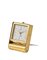 JAEGER Orologio da viaggio in metallo Anni '50 Quadrante firmato Movimento con carica manuale Quadrante argentato con indici Misura h cm 8,2 JAEGER Gilt metal travel clock 1950s Dial signed Manual wind movement Silvered dial with indexes h cm 8,2