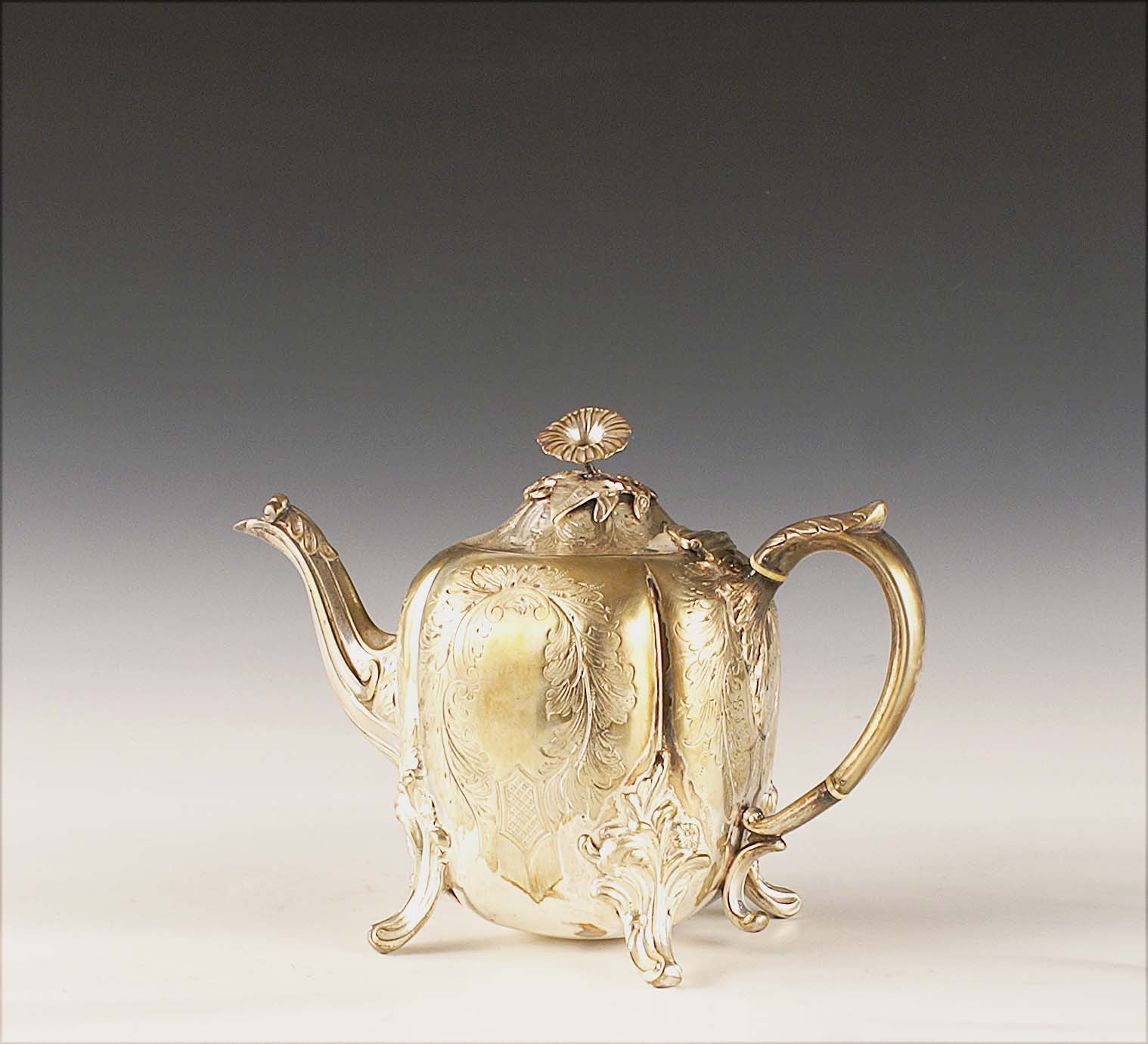 Teiera in sheffield incisa e sbalzata, Inghilterra, vecchia manifattura, h....