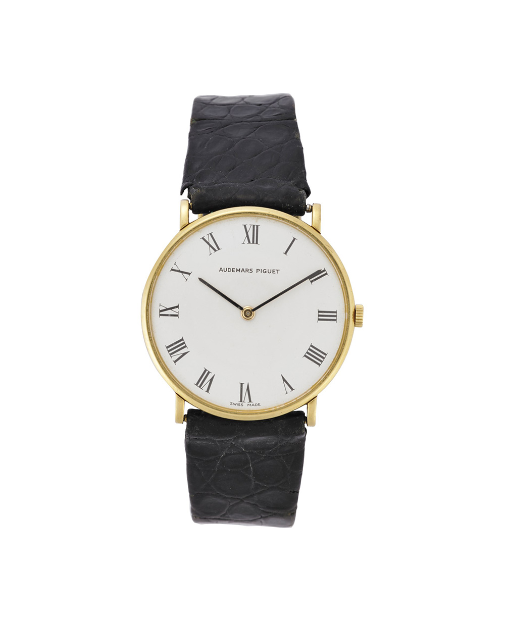 AUDEMARS PIGUET Orologio da polso da uomo in oro 18K Anni '70 Quadrante, movimento e cassa firmati Movimento con carica manuale Quadrante bianco con cifre romane Cassa n. C52172 Movimento n. 293536 Diam. mm 31,5 AUDEMARS PIGUET Gent's 18K gold wristwatch 1970s Dial, movement and case signed Manual wind movement White dial with Roman numerals Diam. mm 31,5