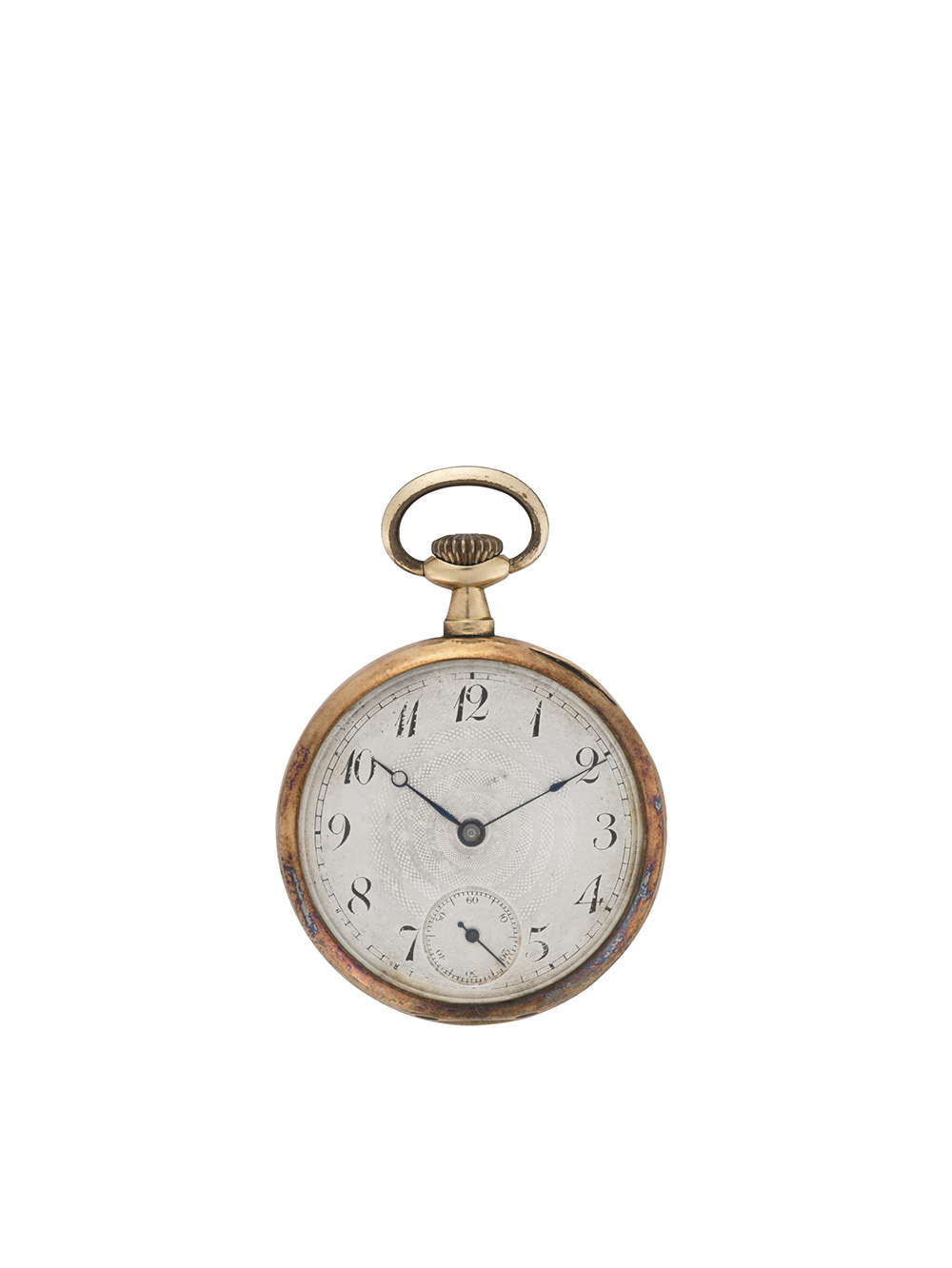 L. BADER A Genève Orologio da tasca da uomo in oro 14K Epoca inizio sec. XX Cassa firmata Movimento con carica remontoir, scappamento ad ancora Quadrante argentato con numeri arabi e decorazione guilloché, quadrantino ausiliario per i secondi alle ore 6 Cassa n. 905094 Diam. mm 43,5 circa L. BADER A Genève Gent's 14K gold pocket watch Early 20th century Case signed Manual wind movement Silvered dial with Arabic numerals, auxiliary dial Diam. mm 43,5 circa