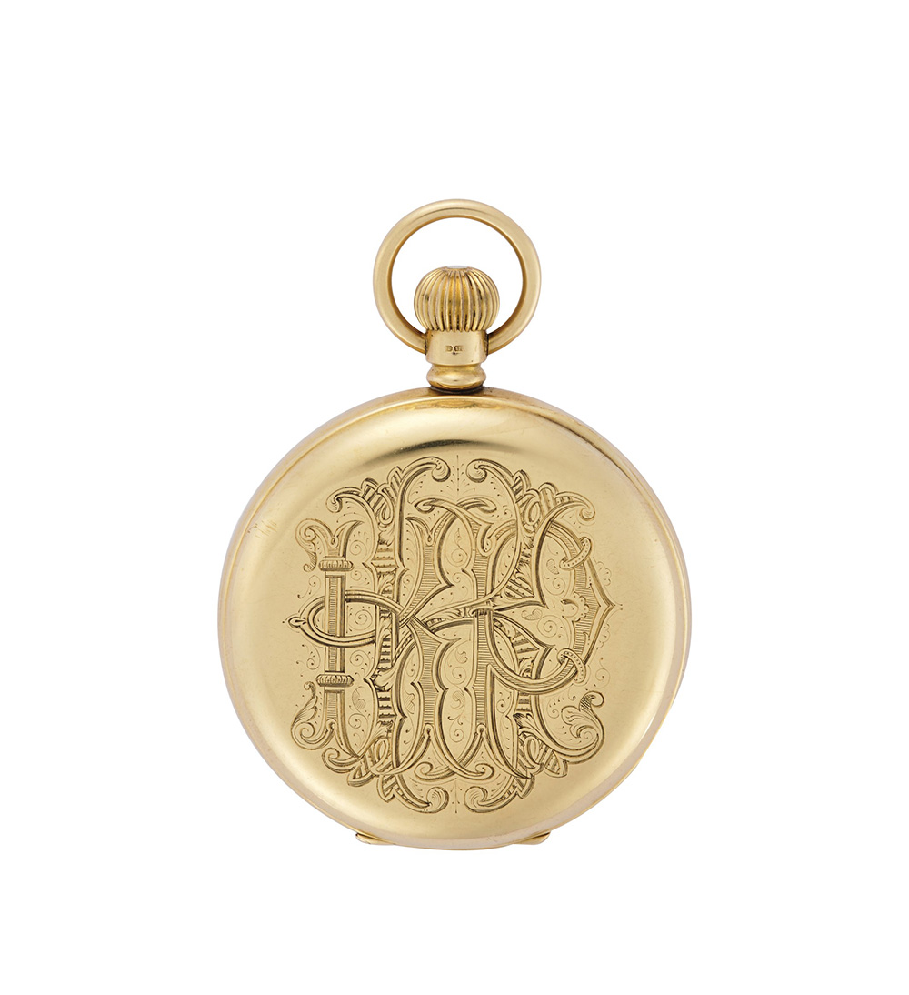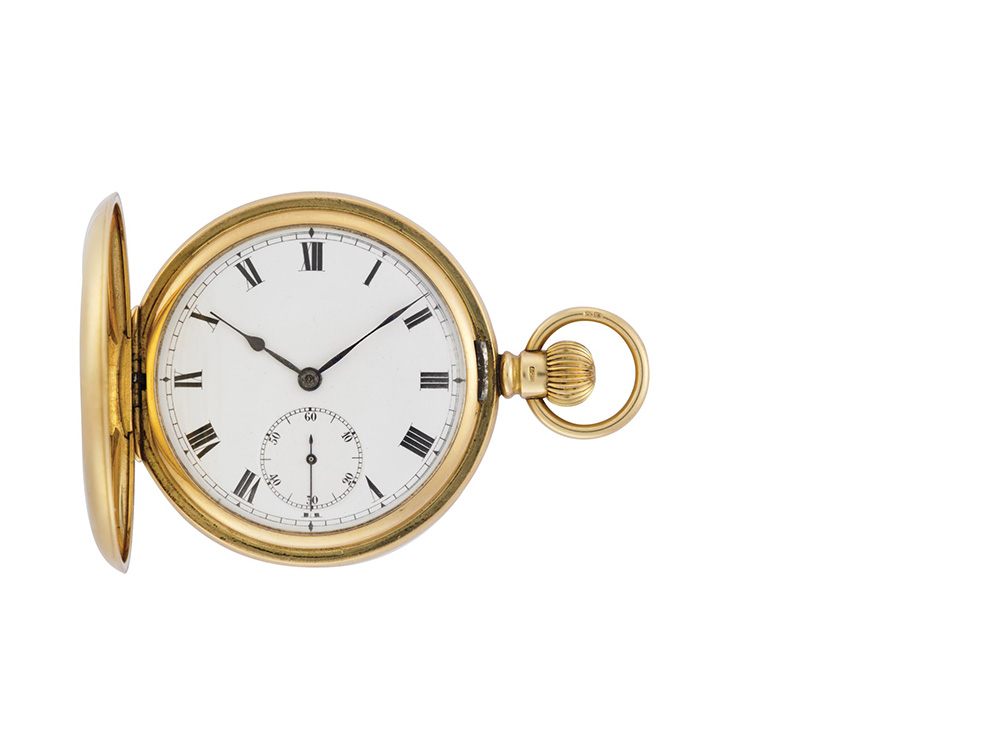 ANONIMO Orologio da uomo da tasca in oro 18K, demi-savonnette Epoca inizio sec. XX Movimento con carica remontoir Quadrante in smalto bianco con cifre romane, quadrantino ausiliario per i secondi alle ore sei Cassa n. 26496 Diam. mm 51 ANONYMOUS Gent's 18K gold pocket watch Manual wind movement White enamel dial with Roman numerals, auxiliary dial Diam. mm 51