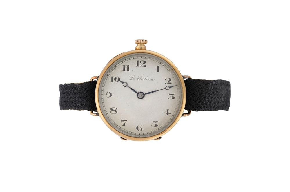 LE SALEVE Orologio da tasca da donna, modificato a polso, in oro 18K Epoca inizio sec. XX Quadrante, movimento e cassa firmati Movimento con carica manuale, scappamento a cilindro Quadrante argentato con cifre arabe Cassa n. 21923 Diam. mm 27 LE SALEVE Lady's 18K wristwatch Dial, movement and case signed Manual wind movement Silvered dial with Arabic numerals Diam. mm 27