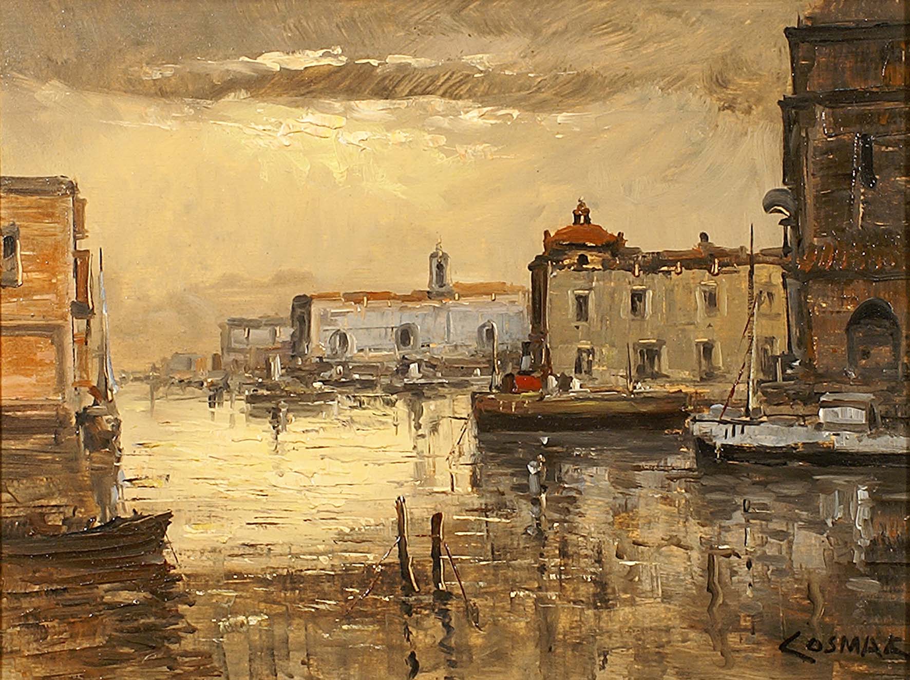 Cosmac (XX secolo), "Veduta di Venezia", olio su tavola, cm. 30x40, firmato in basso a destra.
