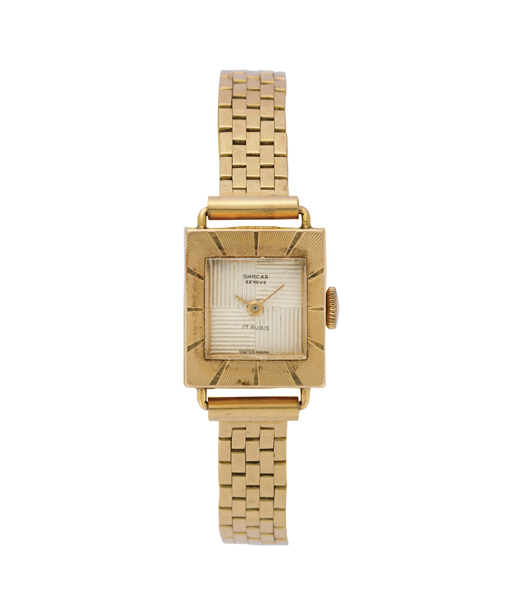 SARCAR Orologio da polso da donna in oro 18K Anni '70 Movimento con carica manuale Quadrante argentato guilloché Cassa n. S357 Misure mm 15x17 SARCAR Lady's gold wristwatch 1970s Manual wind movement Silvered dial mm 15x17