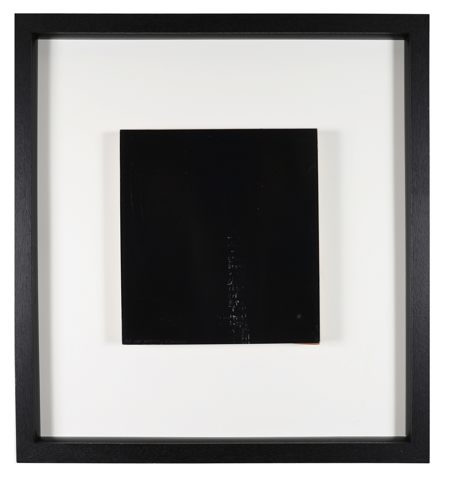 REINHARDT AD (1913 - 1967) Untitled. Acrylic on Plexiglas. Cm 30,50 x 30,50. Unique piece. Monogram AR lower right. Complete signature and dedication to "Dare Basamon" lower left. The Gallery: Gertrude Stein, New York, label at the back.. Cornice presente