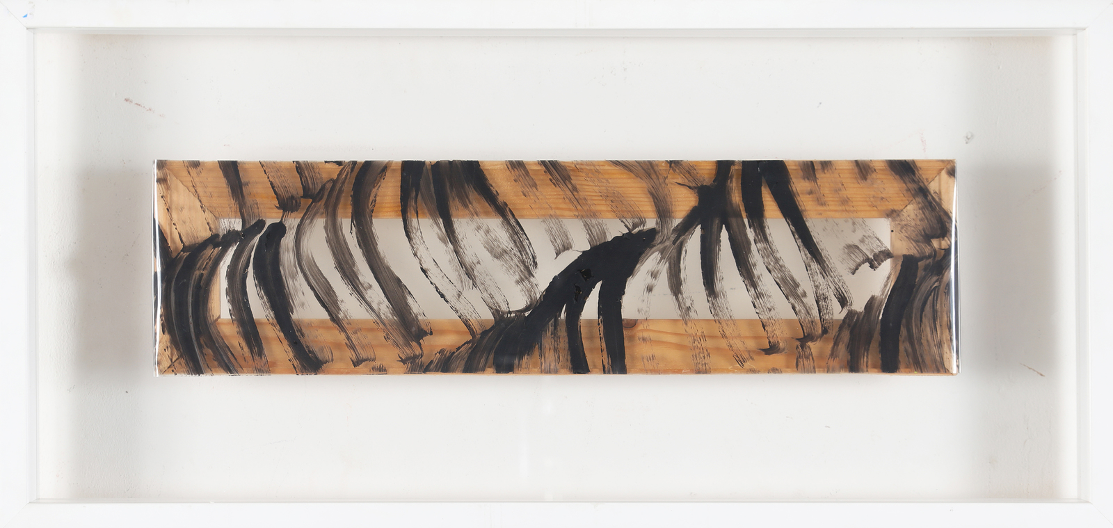 ACCARDI CARLA (1924 - 2014) Black. 1969. Varnish on sicofoil. Cm 15,00 x 55,00. Signature, year and title at the back. Artist's autenthicity certificate on photo. Cornice presente