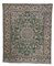 Tappeto a fondo verde, decorato a motivi vegetali nei toni del blu, cm 248x203