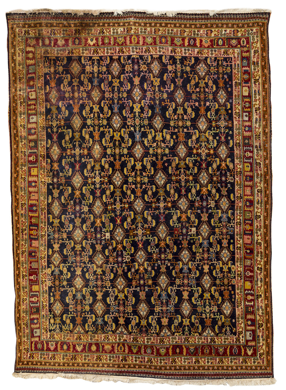 Tappeto a fondo blu decorato a motivi geometrici, cm 288x208