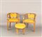Coppia di poltroncine con relativo pouf in mogano di linea squadrata con...