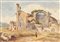 Paesaggio con rovine romane e figure, acquerello su carta. Misure: cm 28x20,5