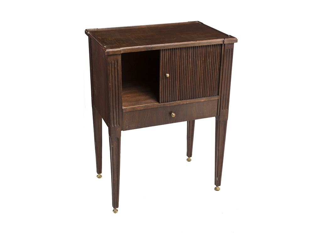 Comodino da centro in noce, con uno sportello a serrandina ed un cassetto sottostante, gambe rastremate scanalate. Francia, XIX secolo, cm 70 x 52 x 34