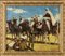 Incontro nel deserto tra soldati e beduini, firmato in basso a destra, olio...