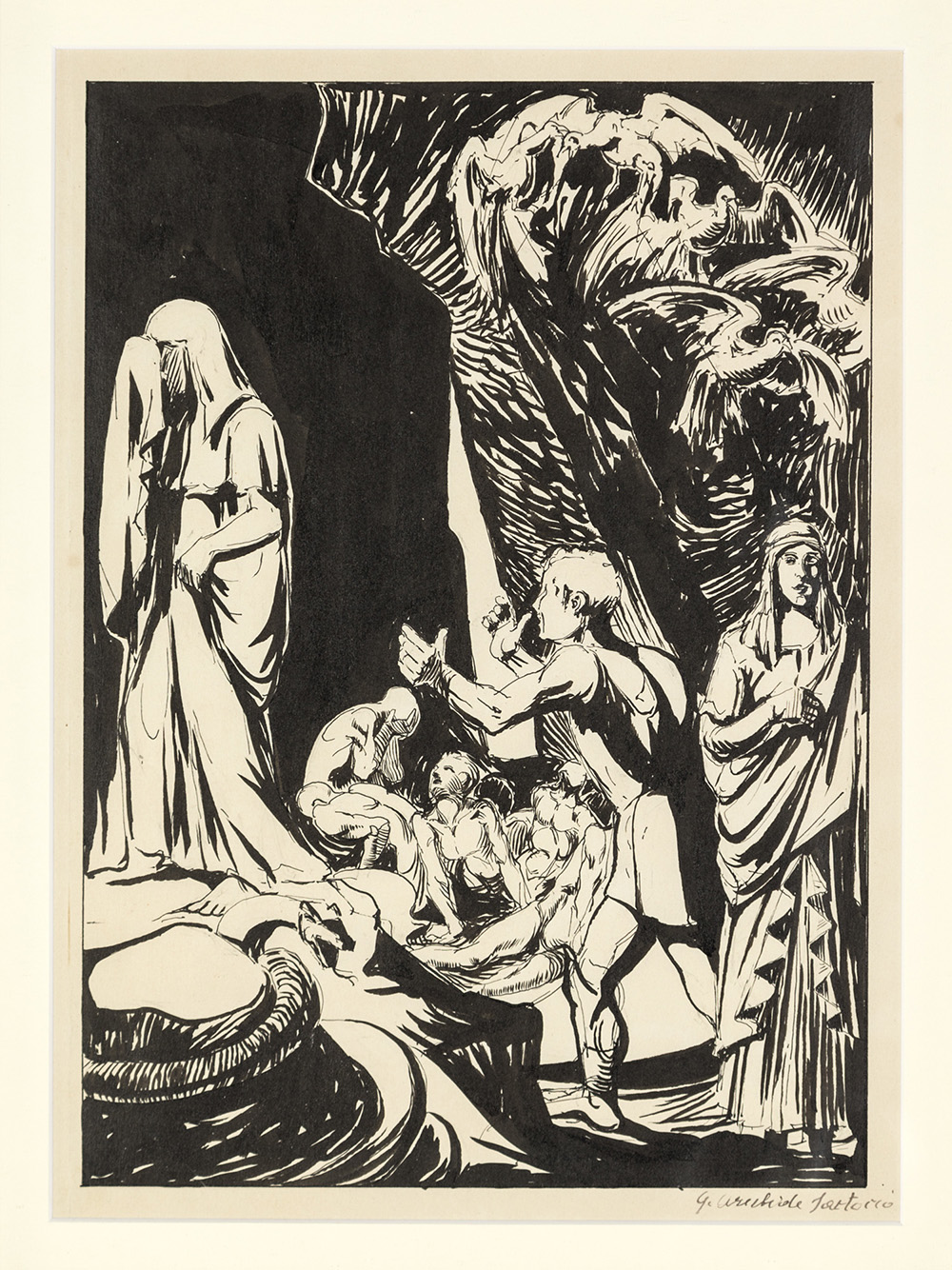 Studio per la Via Crucis china su carta cm 38x27 firmato in basso a destra