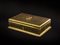 Scatola in metallo dorato decorata a motivi vegetali, coperchio con figura di...