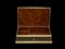 Scatola in metallo dorato decorata a motivi vegetali, coperchio con figura di Buddha centrale, interno rivestito in radica di tuja cm 26x16,5x7,5