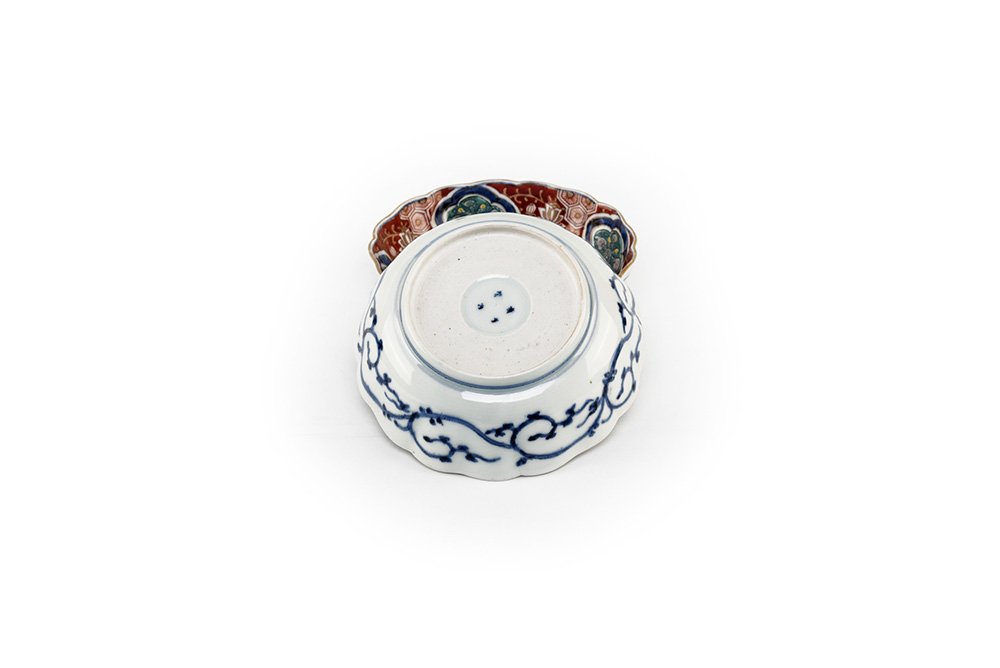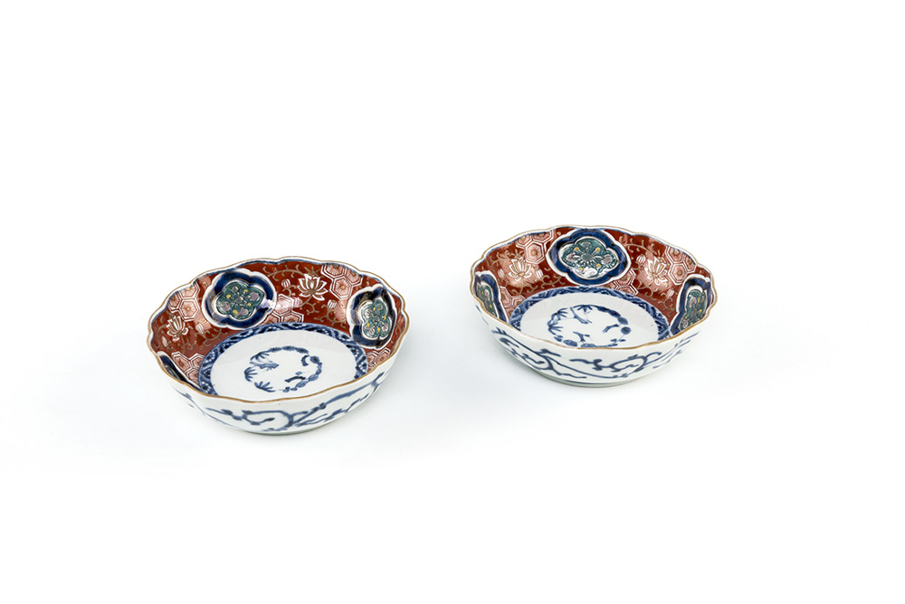 Due ciotole in ceramica Imari con bordo ondulato, cm 15 Periodo Edo (1614 - 1867)