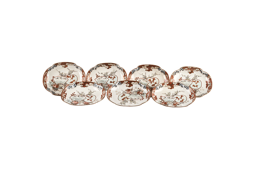 Servizio di dieci piatti di forma ovoidale in ceramica Kutani cm 16,5x13 cm Periodo Meiji (1868 - 1913)