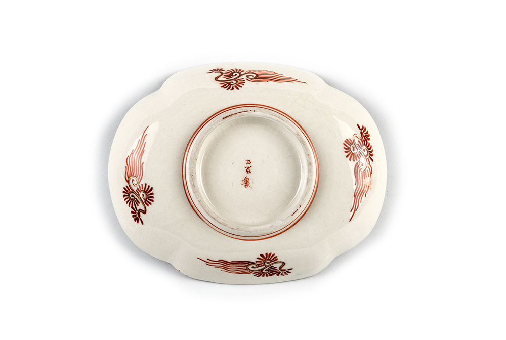 Servizio di dieci piatti di forma ovoidale in ceramica Kutani cm 16,5x13 cm...