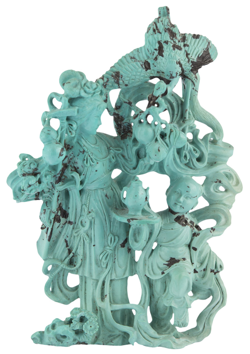 Lotto 474 | Scultura in turchese raffigurante Guanyin, XX secolo, g 314