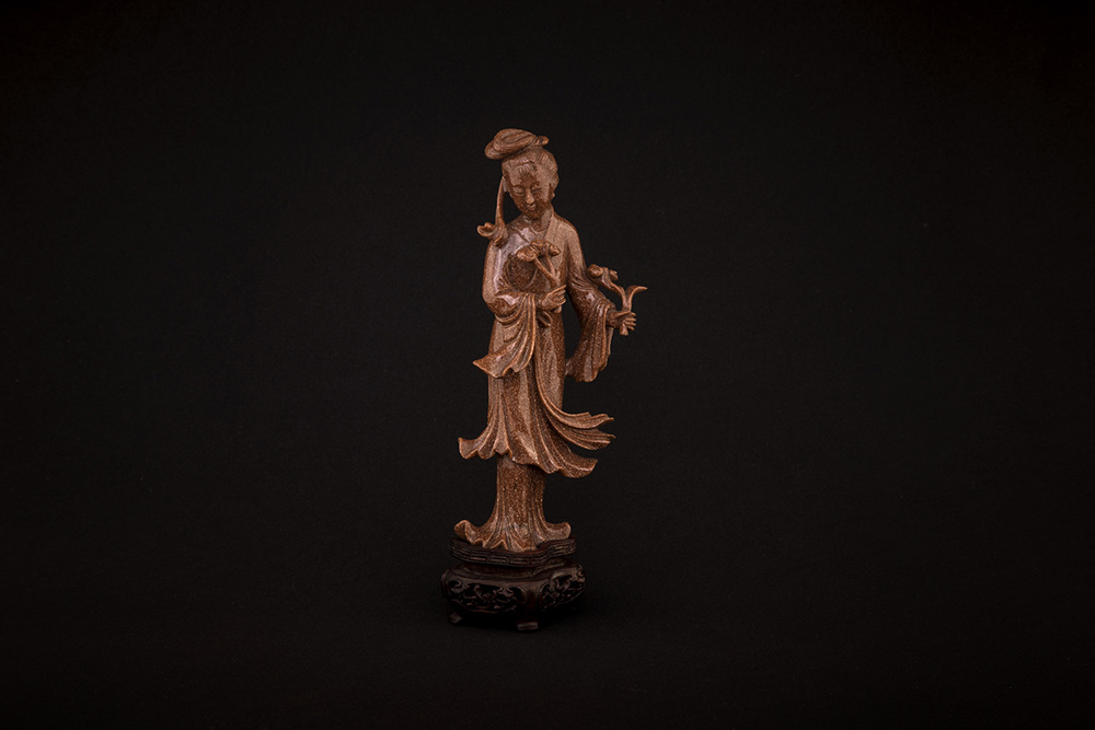 Lotto 482 | Scultura di Guanyin in goldstone altezza cm 15,5