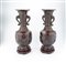 Coppia di vasi in bronzo brunito con manici Cina XIX secolo, basi in legno,...