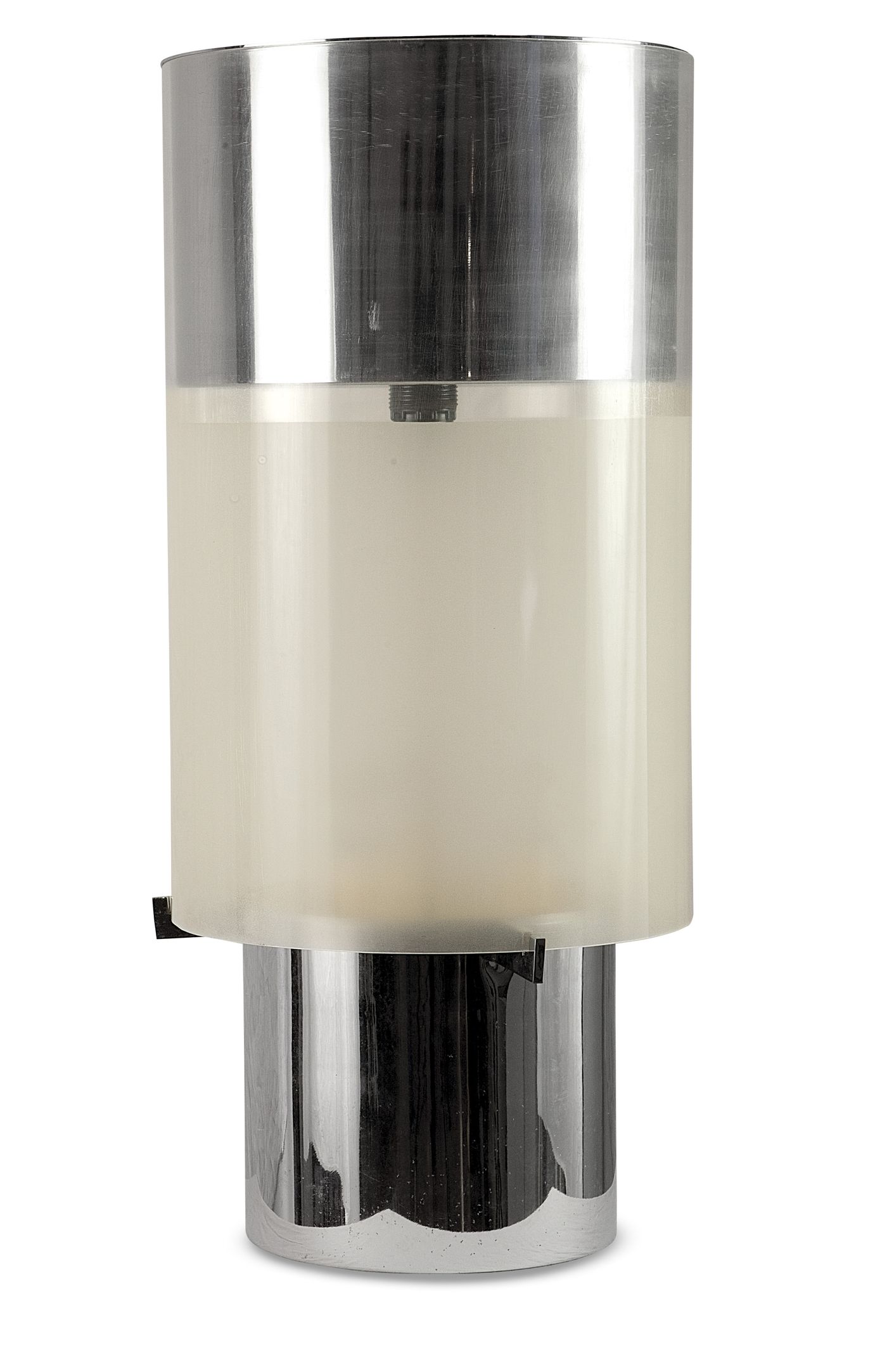 LAMPADA - Metacrilato trasparente e cromato, doppia illuminazione. 1970 circa. H cm 68
