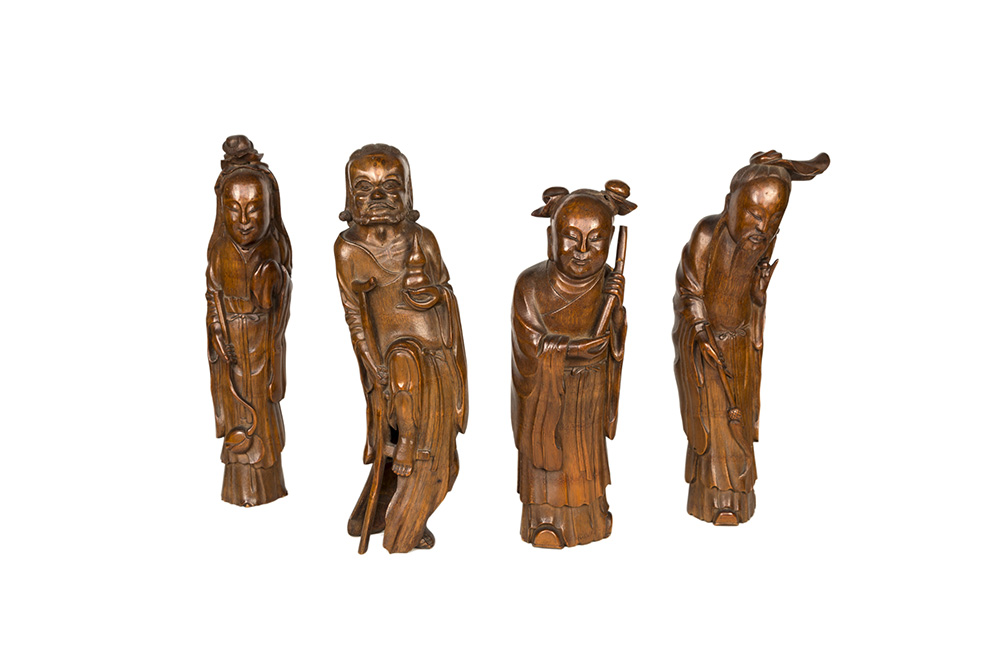 Otto sculture in bambù raffiguranti saggi, Giappone XIX/XX Secolo, h cm 36