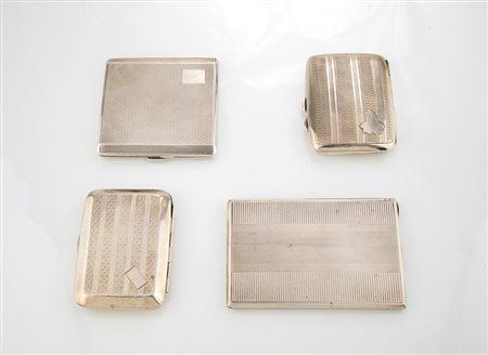 Lotto di quattro portasigarette in argento, fogge e dimensioni diverse, g 382