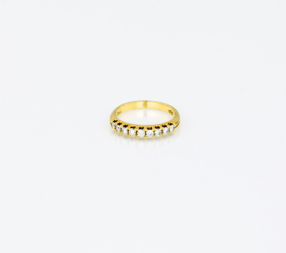 Fedina in oro giallo con 9 brillanti, ct 0,45 g 3,20