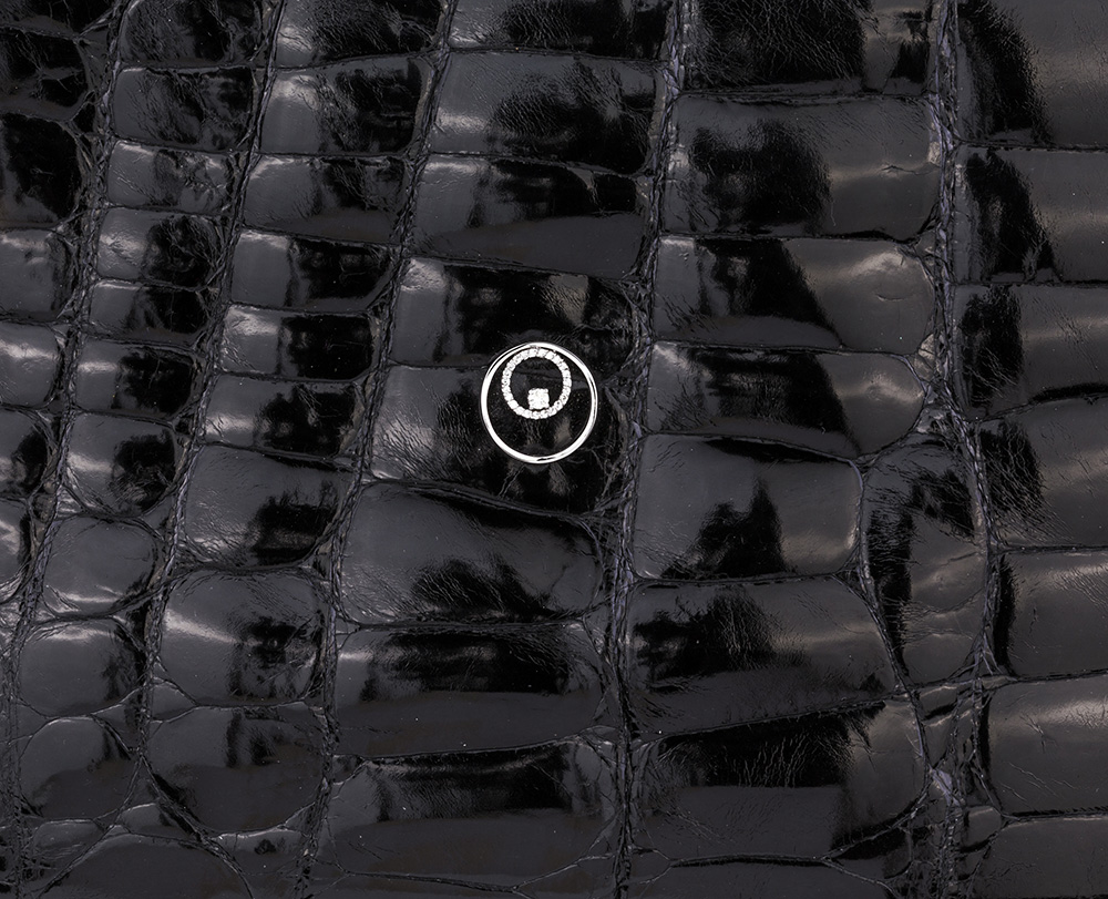 Pochette di coccodrillo nero, con punto luce di gioiello in oro bianco con 23...