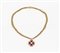 Collana di fili di catenelle in oro 9 Kt con croce in oro 9kt, impreziosito di palline in rubino e centro in brillanti, g 28,20