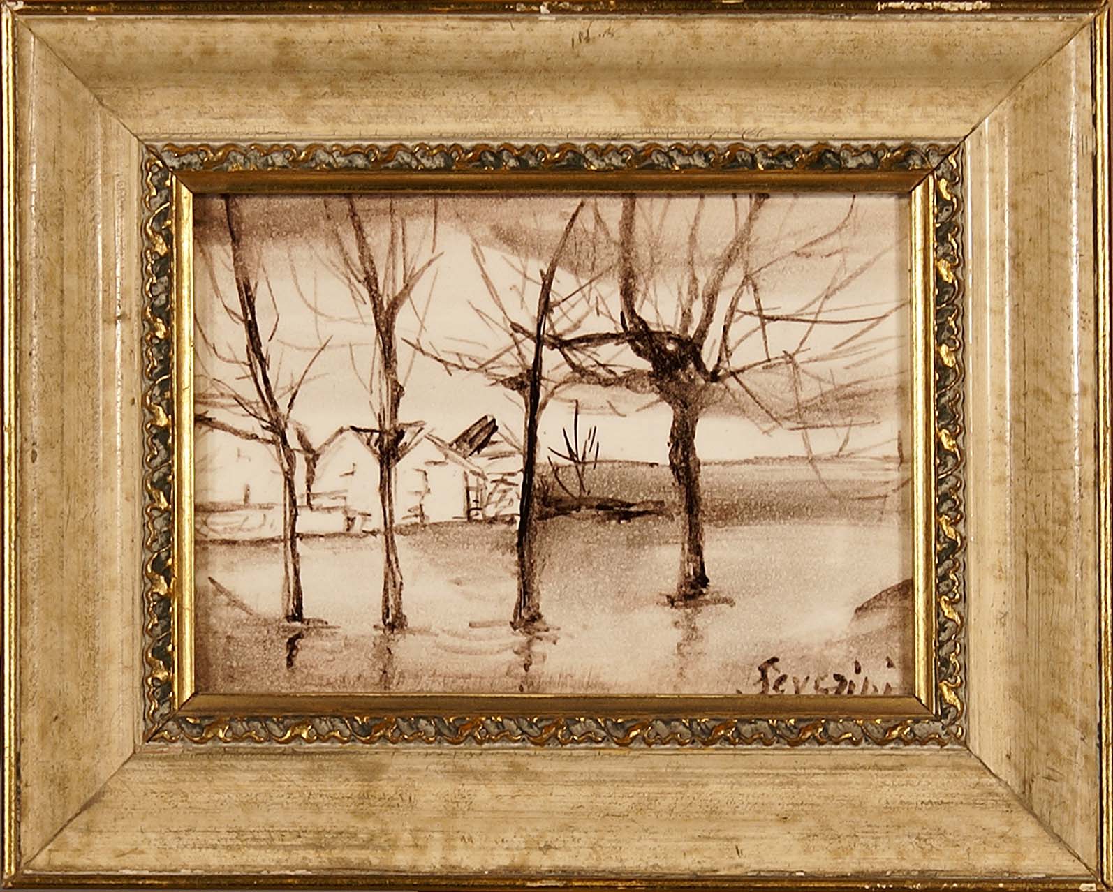 Lotto 543 | Placca in ceramica raffigurante paesaggio invernale, cm. 13x18,5, reca firma...