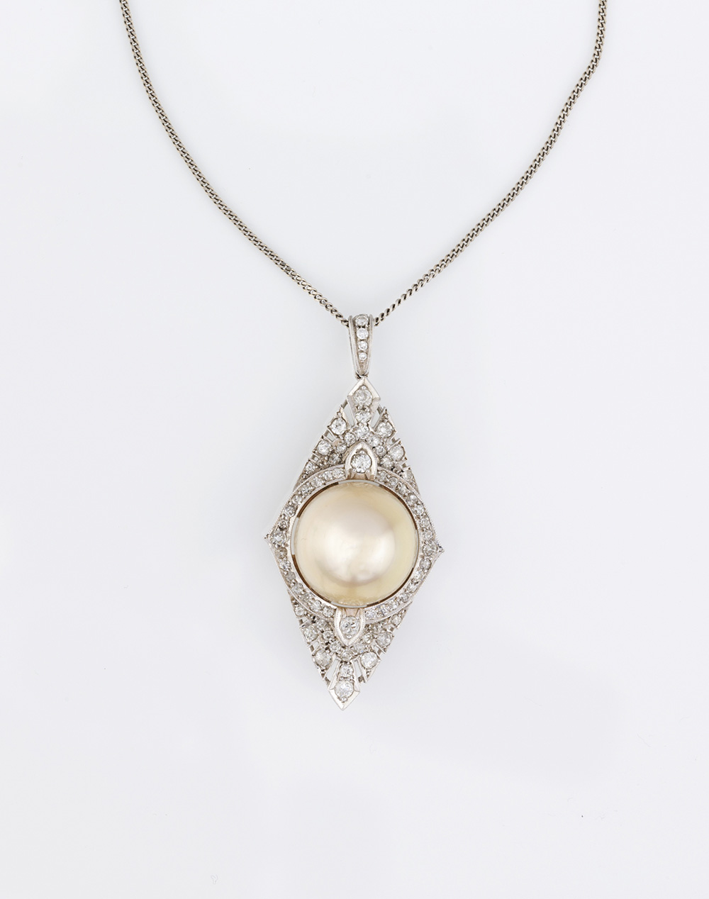 Pendente in platino con diamanti ct 1,50 circa e perla australiana