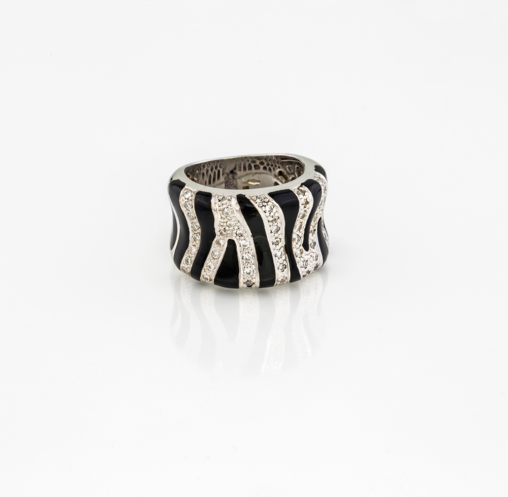 Anello americano in oro titolo 585 con smalti e brillanti ct. 0,70 g 17,70. Misura 15