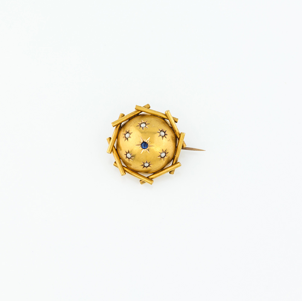 Spilla in oro anni '50 con mezza boule e perline g 4,30