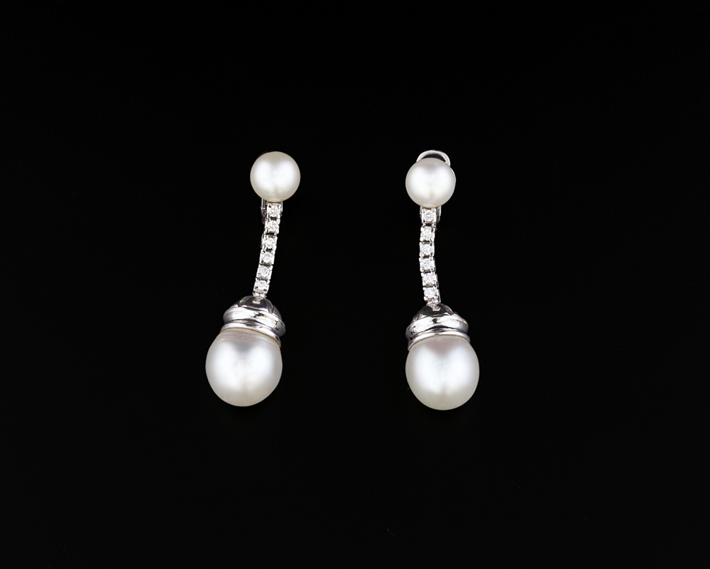 Orecchini pendenti con grande perla Australia con 12 brillanti ct 1,00