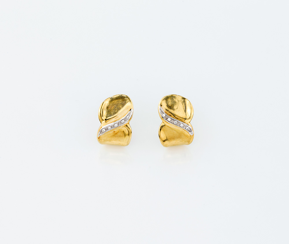 Lotto 729 | Orecchini lastra lucida in oro giallo con brillanti ct 0,10 g 11.80 totali