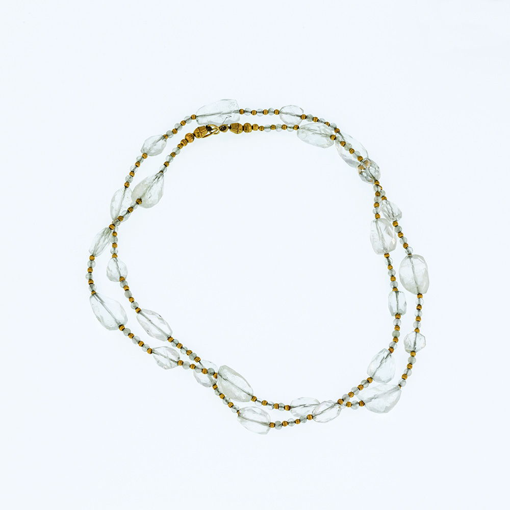 Collana in aquamarine chiare con palline di argento dorato
