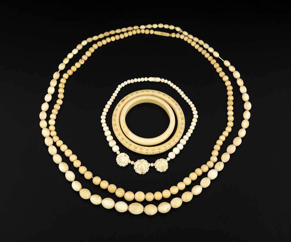 Gruppo di tre collane e due bracciali in avorio g 215,60