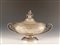 Zuppiera in argento di forma ovale, corpo baccellato, anse a voluta, coperchio con presa a foggia di putto con cornucopia, vecchia manifattura italiana, gr. 3000, cm. 32x52x25.