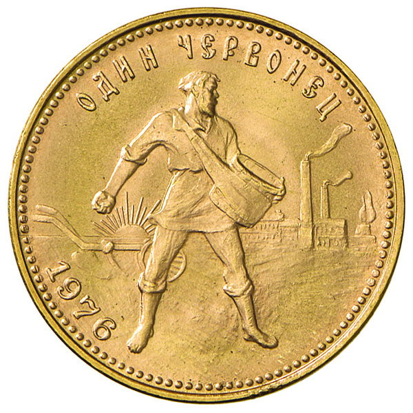 RUSSIA U.R.S.S. Chevronetz (10 rubli) 1976, in oro SPL/FDC