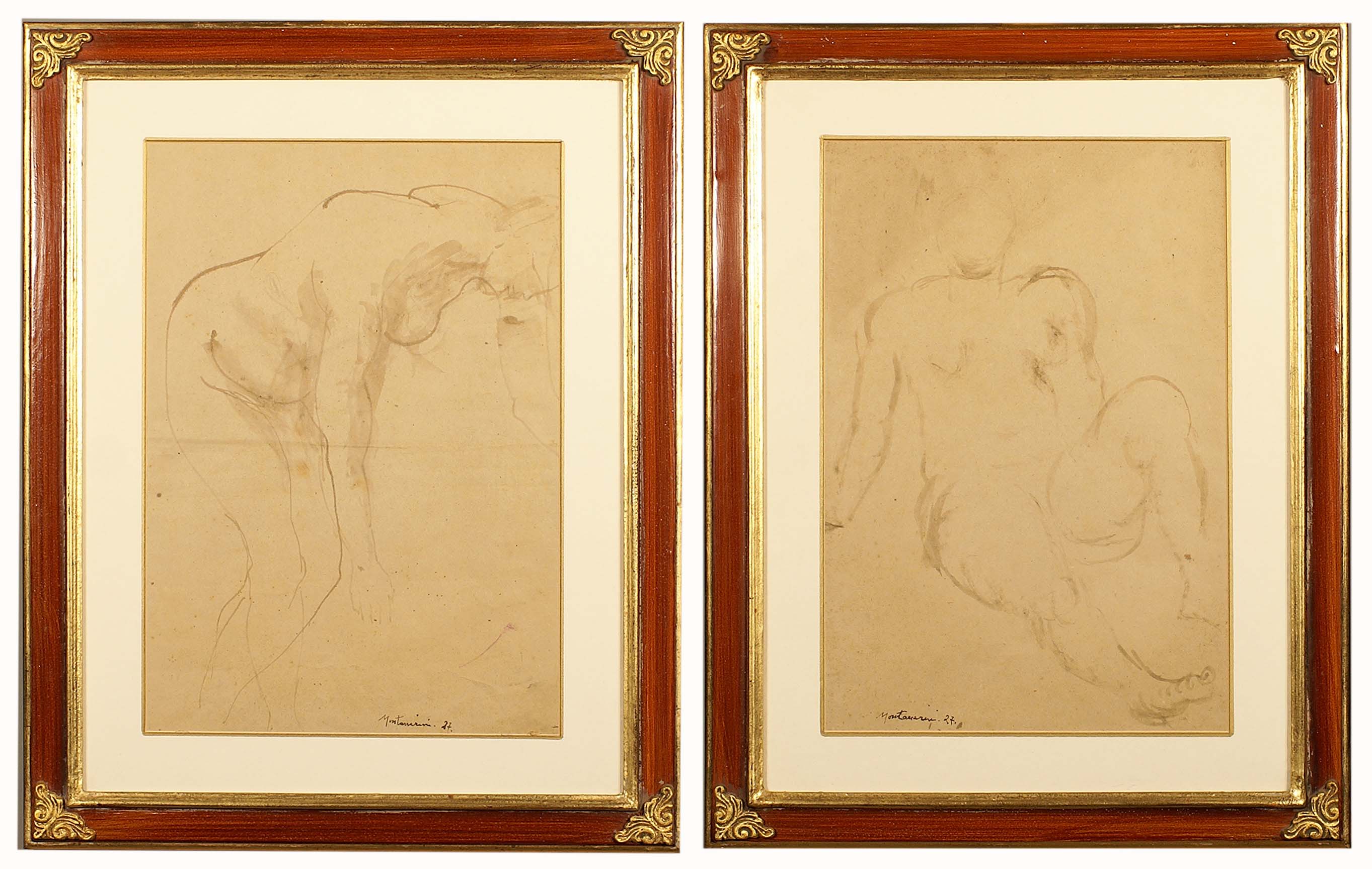 Luigi Montanarini (Firenze 1906 - Roma 1998), "Ritratti femminili", coppia di bozzetti, cm. 45x35, firmati e datati 1927.